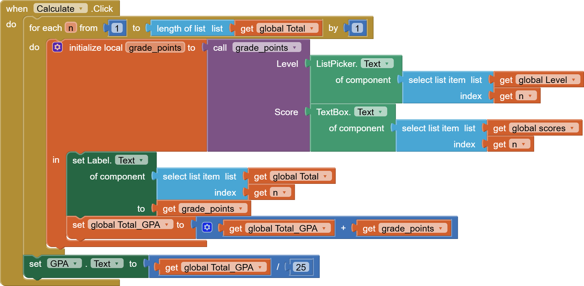That "to Set_Level List_Picker" procedure on the right works perfectly fine. I followed directions offered by ChatGPT to make that section, but its direction to change and modify the "Calculate_Total" procedure is not understandable to me.
