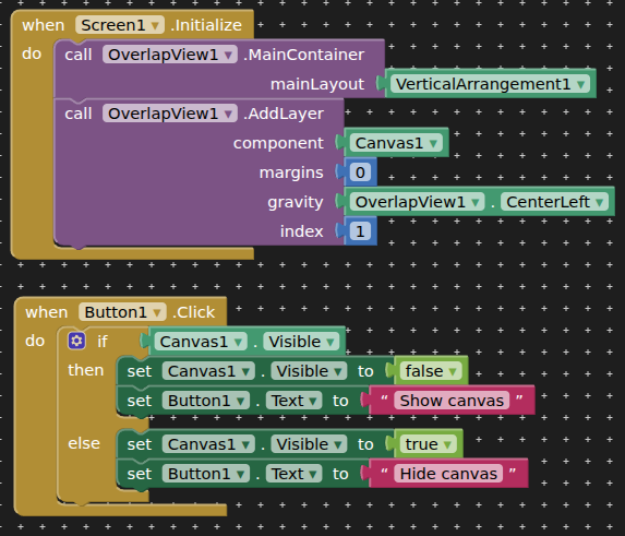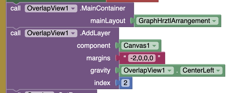 As suggested elsewhere, I'm using a Canvas to put y-labels on a Chart. I put the Canvas next to the Chart in a Horizontal Arrangement, and then draw the labels onto the Canvas at specified x,y locations. So far, so good. But the numerical y-axis labels (that Chart contains) are still there. Is there a way to get the Canvas to overlap the left-hand edge of the Chart so that those are eliminated ?