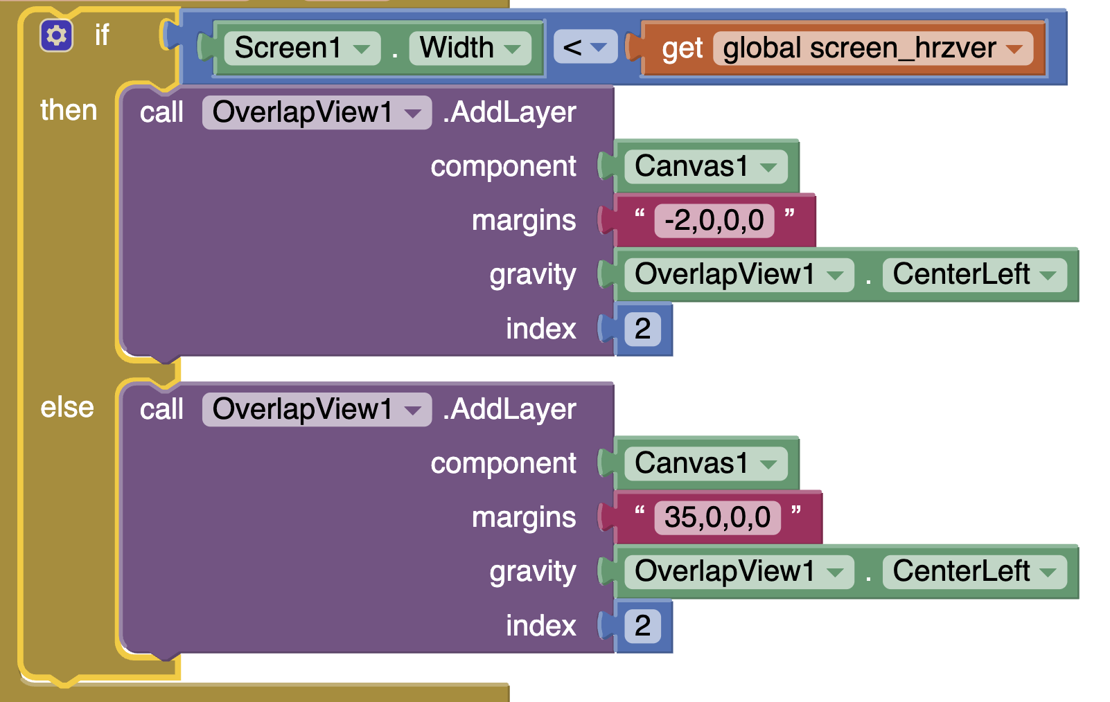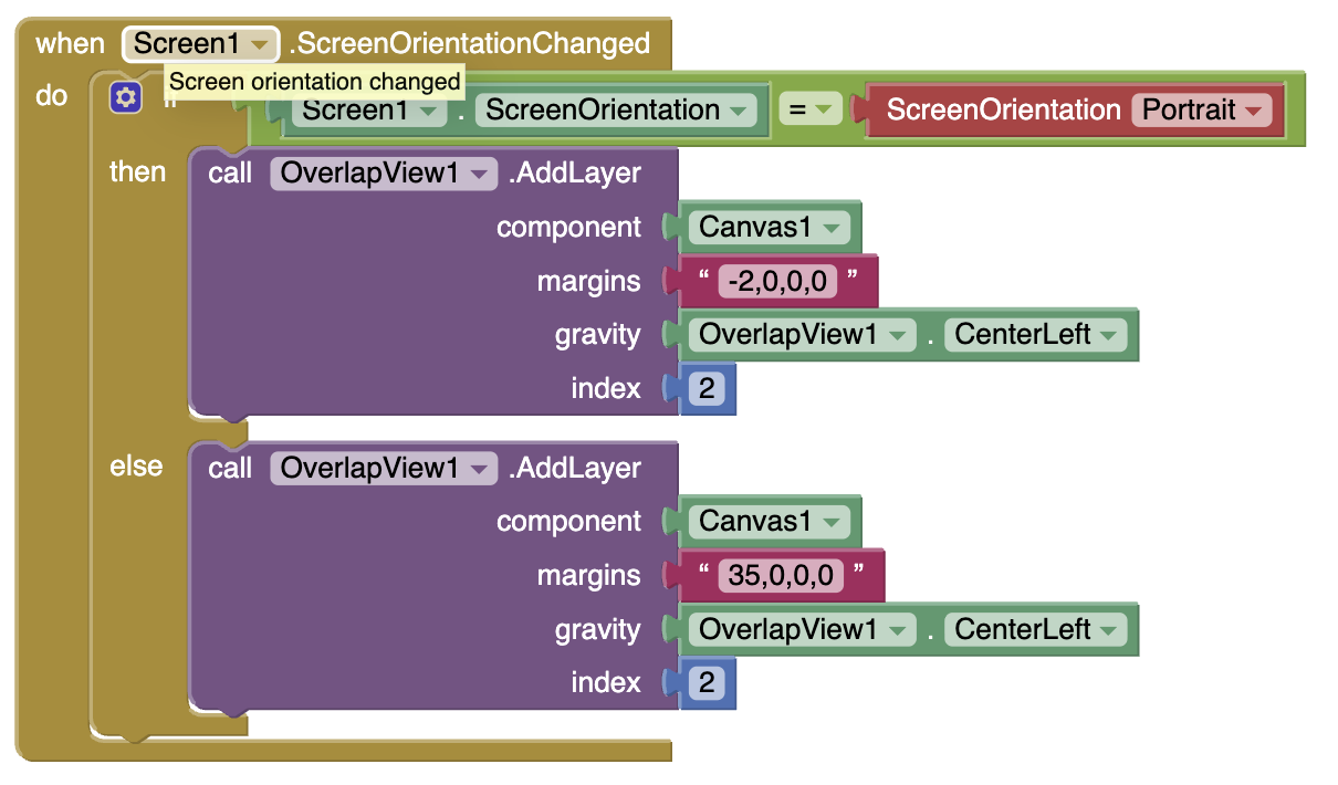 I guess I need to have stuff in my blocks to change the overlap cirteria when the screen orientation changes. This kinda works for that ...