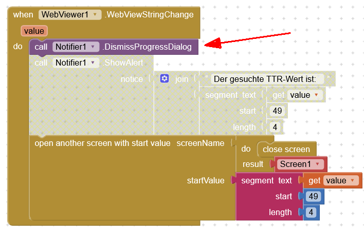 In my AI2 project the progressdialog isnt stopped by the WebViewStringChange block when calling DismissProgressDialog.