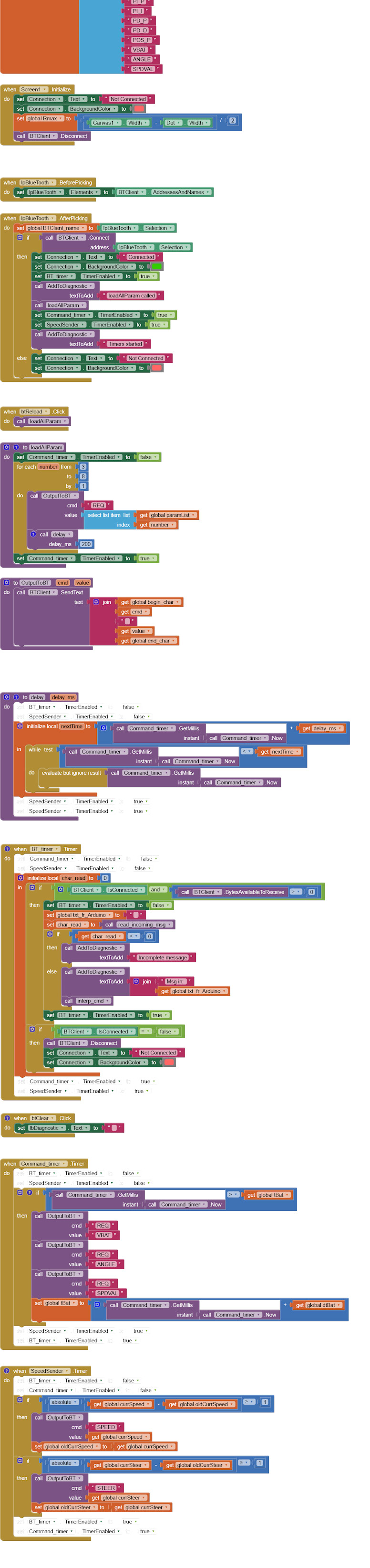 Here is a picture of what I think are the relevant blocks. The timers are BT_timer at 500ms, Command_timer at 1000ms, and SpeedSender at 200ms.