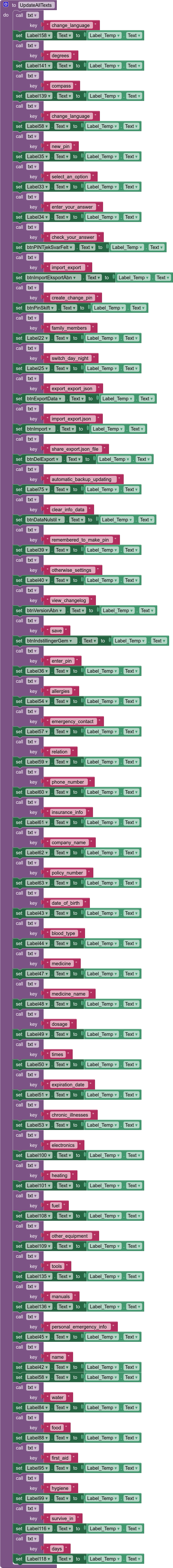 In Screen1.Initialize, you forgot to call the update all texts procedure after recovering the language selection from TinyDB.